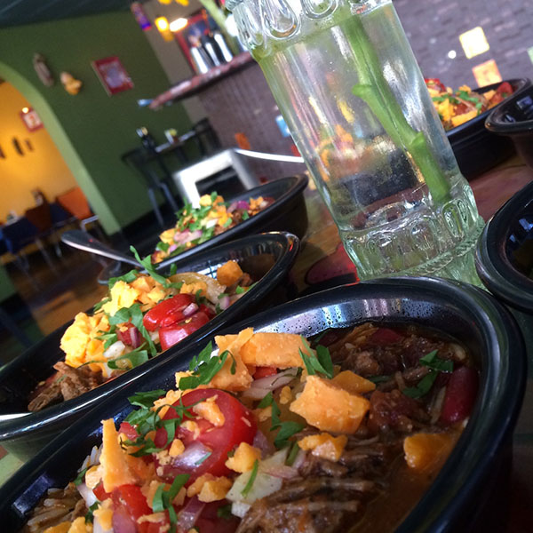 We marinate short ribs overnight in a hatch chilie and peach brine, and then slow roast them for 4 hours. We then lay three tender ribs on a bead of Rice Pilaf filled with chilies and peaches. The special is also served with a Wild Spring Mix tossed in a Peach Vinaigrette. Lastly, we accompany the main entrée with a Hatch Chile Grit cake that is covered with a warm Peach and Bacon salsa. $8.99